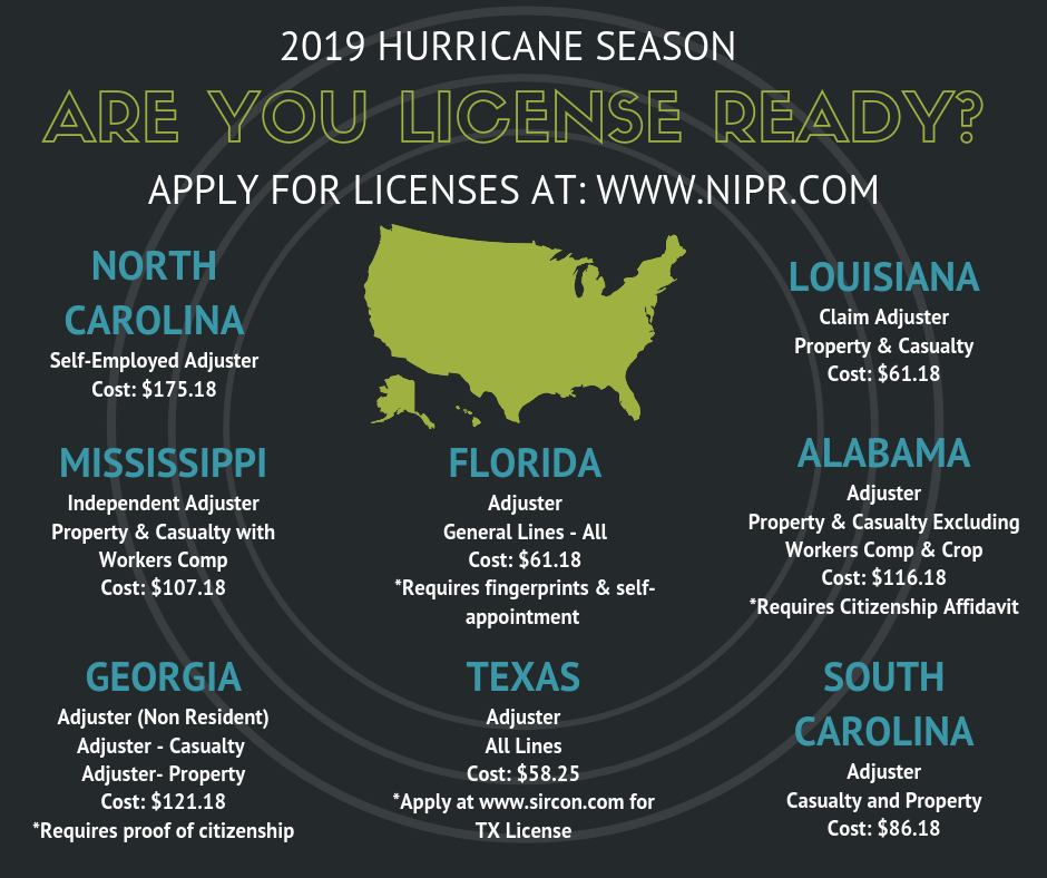 The peak of the Atlantic hurricane season is coming! With many coastal states potentially affected, you may want to depend on emergency licensing. Although this seems like a good option, it is not the best practice. Emergency licensing is very limiting, complicated and temporary. As most of these states experience heavy storm activity every year, we strongly recommend obtaining the permanent license so you are compliant to work when the need arises!