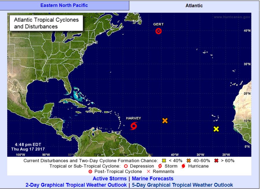 Tropical storm Harvey has formed and may pose a threat early next week to parts of Central America’s Caribbean coast. However, it is unlikely this system will impact the U.S.
